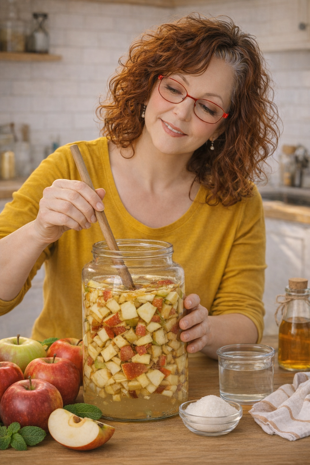 Domácí jablečný ocet je pro mě taková malá připomínka, že některé věci nemusí být složité ani drahé, protože stačí jablka, voda, trocha trpělivosti a nechat přírodu pracovat svým tempem. Vezmu slupky a jádřince z jablek, dám je do velké sklenice, zaliju vodou s malým množstvím cukru, přikryju jen plátýnkem a nechám stát v kuchyni, kde není přímé slunce, a každý den jen lehce promíchám, aby se nic nekazilo. První dny to vypadá nenápadně, pak začne směs jemně vonět po kvašení a já vím, že se něco děje, protože příroda si dělá svoje bez spěchu a bez dokonalosti. Po týdnu nebo dvou vše přecedím a nechám tekutinu dál zrát, dokud nemá typickou kyselou chuť jablečného octa, což může trvat ještě pár týdnů, ale právě to čekání je součástí celého procesu. Když je hotovo, používám ho spíš jako malé dochucení nebo kapku do vody, ne jako zázračný lék, protože dobře vím, že ani u cukrovky žádná jedna věc nic nespasí a že největší rozdíl dělají obyčejné každodenní kroky. A možná právě proto mám domácí ocet ráda, protože mi připomíná, že i pomalé věci mají smysl a že péče o sebe nemusí být dokonalá, jen opravdová.