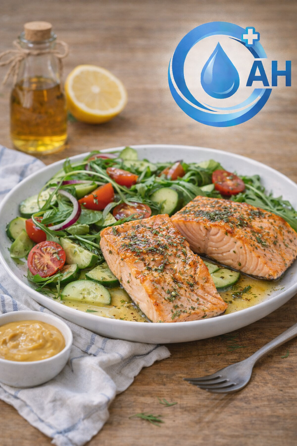 Losos dodá kvalitní bílkoviny a zdravé tuky, které zpomalují vstřebávání sacharidů, marináda je bez cukru a malé množství jablečného octa může jemně podpořit stabilnější glykemii po jídle, zvlášť když lososa podáš s porcí zeleniny a třeba menší dávkou brambor nebo quinoy.