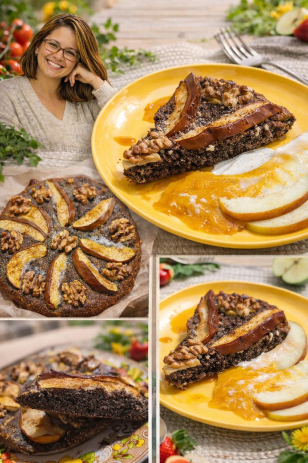 4 bílky ušlehám do pěny, přidám mletý mák cca 4 lžíce, dvě lžíce jemně mletých mandlí, lžíci čekankového sirupu a vše zamíchám. Vleju do formy na pečící papír a pokladů na to jablka na plátky a vlašské ořechy. Peču na 175° cca 20-25 minut dokud se mě nelepí těsto na špejli. Podávám s bílým jogurtem a dia pomerančovo mrkvovou marmeládou a čerstvými jablky